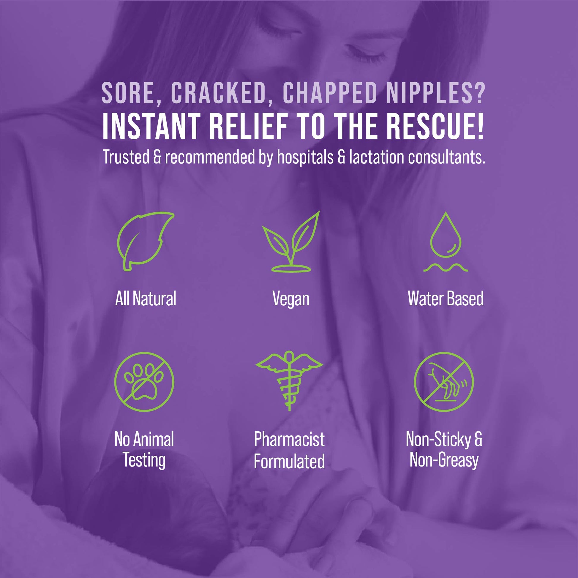 Developed exclusively for breastfeeding by a renowned pharmacist and expert in breastfeeding and lactation pharmacology, Dr. Nice's Moisturizing Gel's patented, vegan, all-natural, lanolin-free formula instantly soothes and cools sore, cracked, chapped, and chafed nipples.